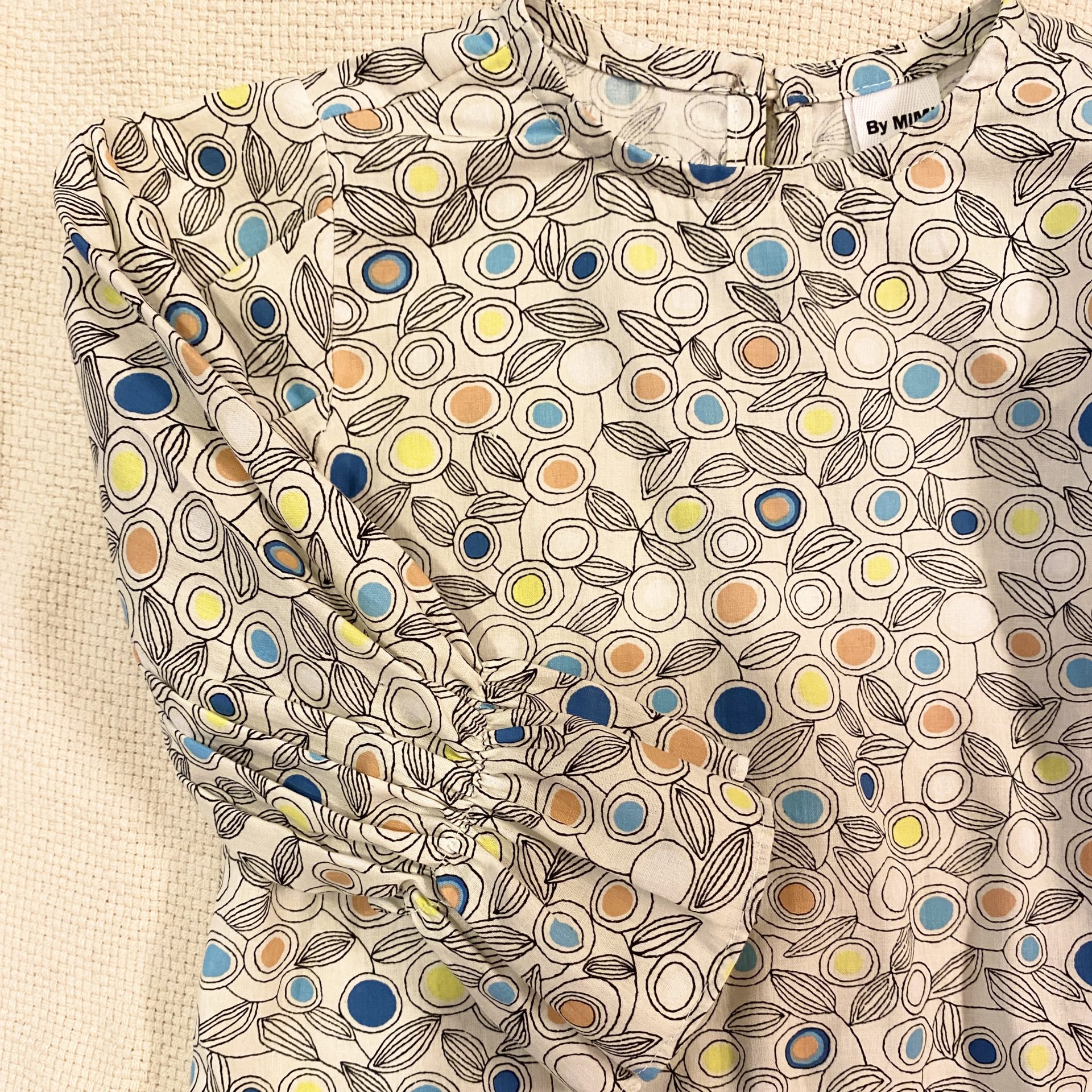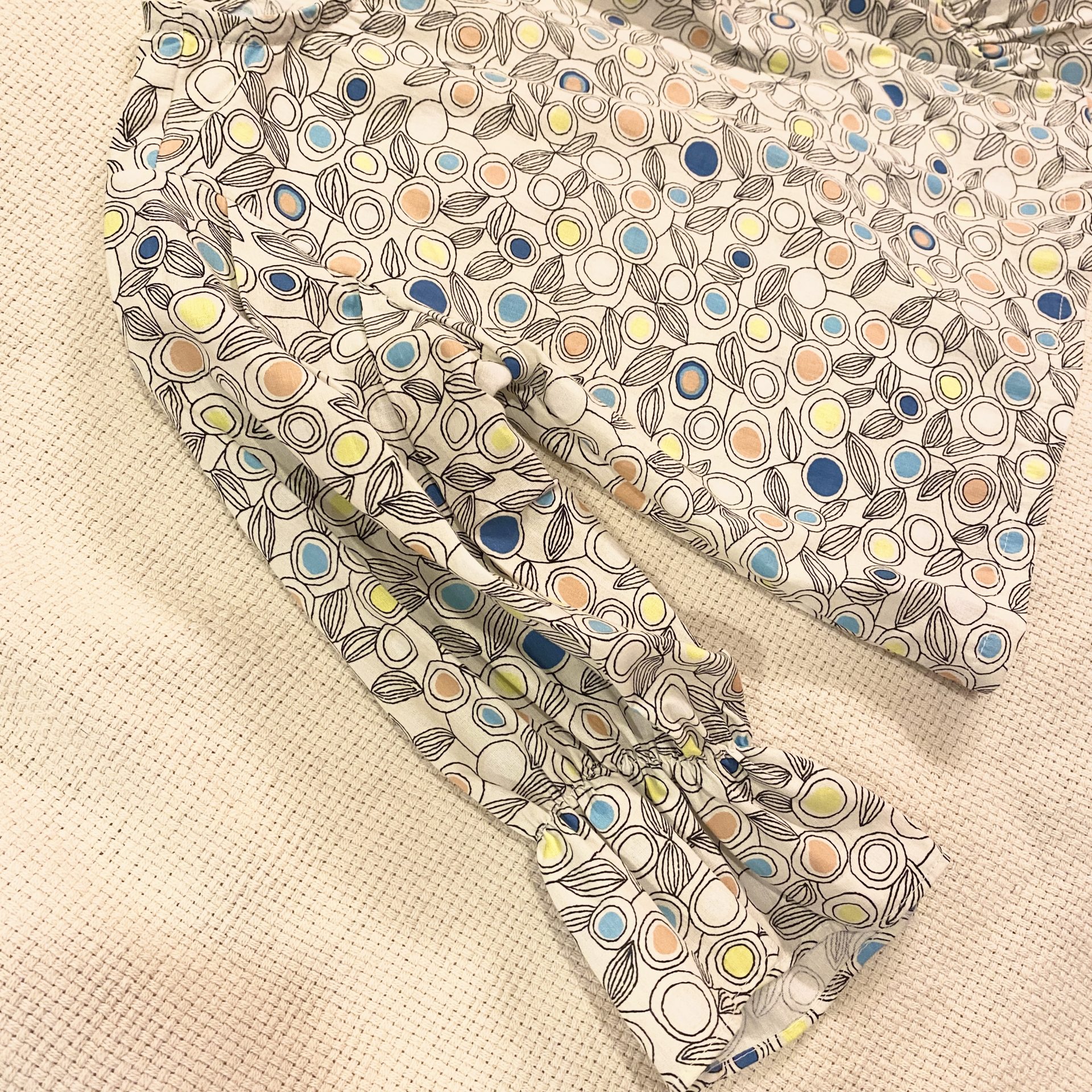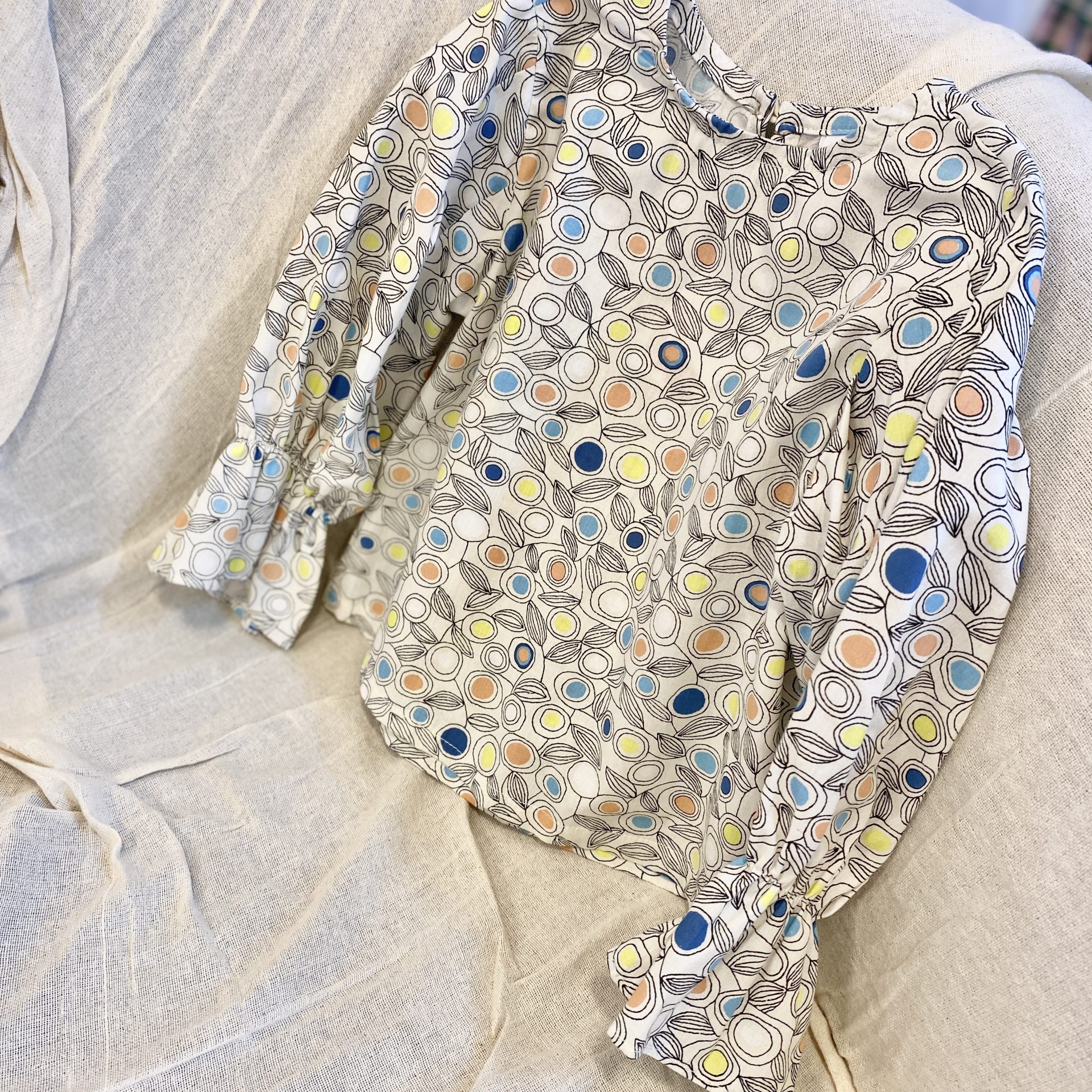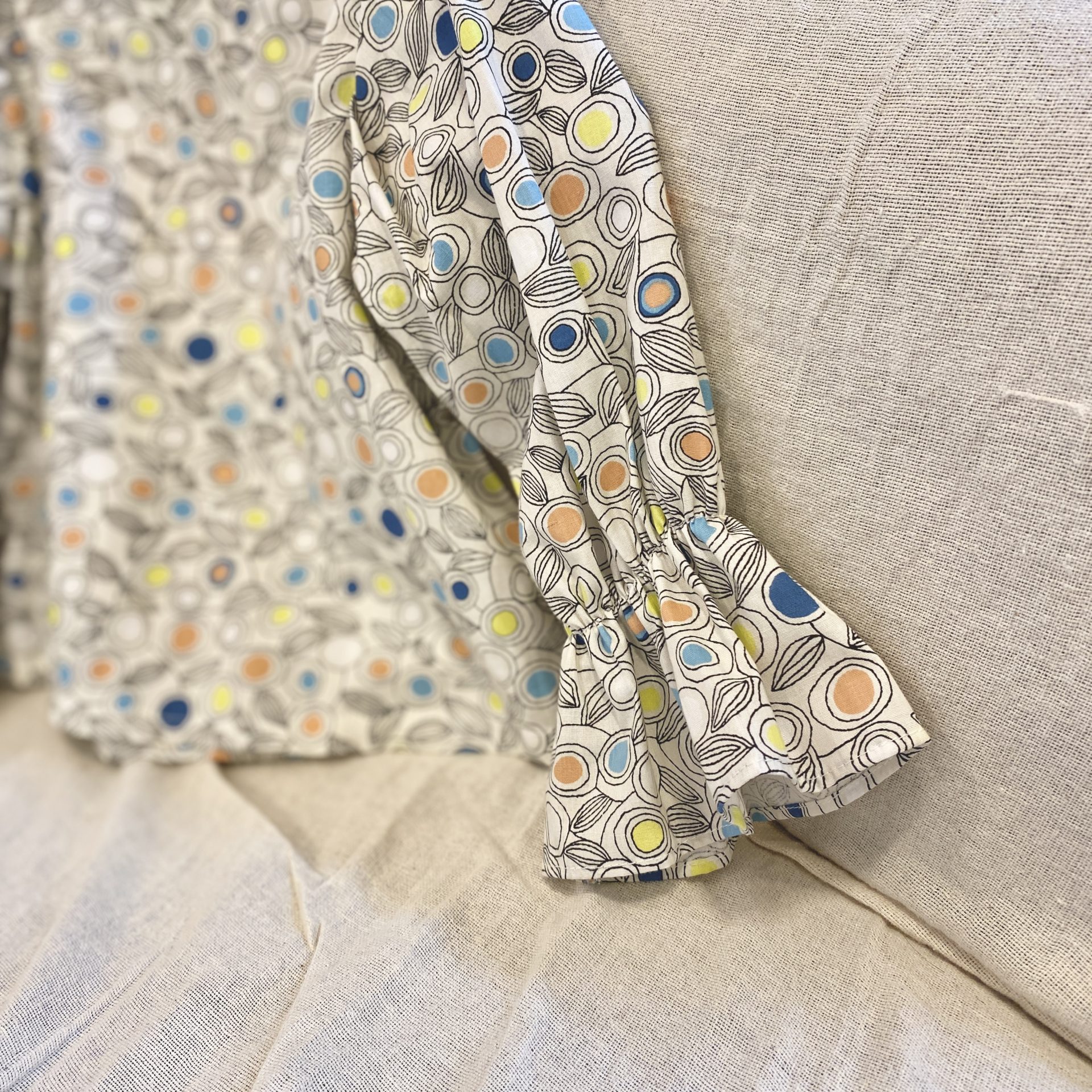 カジュアルな柄に袖のフリルがマッチしてかわいい長袖のトップスです。